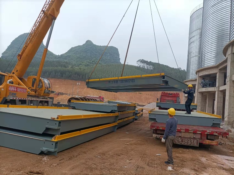 柳州特力汽車衡采用模塊化軸銷搭接,以便秤臺之間可以搭接互換,便于秤體現(xiàn)場安裝。限位采用縱向與橫向結合的方式,保證秤體縱向、橫向不移位。